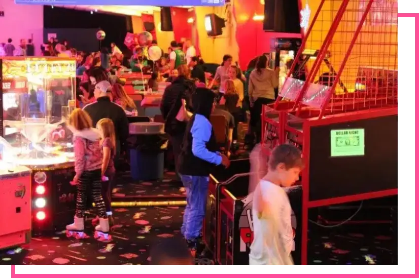 Have even more fun at Roller Kingdom! Try your hand at SkeeBall for only 1 quarter and win tickets for great prizes at our prize center. Hit the Jackpot at Wheel of Fortune or Lucky Zone, and win stuffed animals at the crane game! Keep the competition going with basketball, air hockey, and racing video games. All of this equals more fun for all ages at Roller Kingdom!