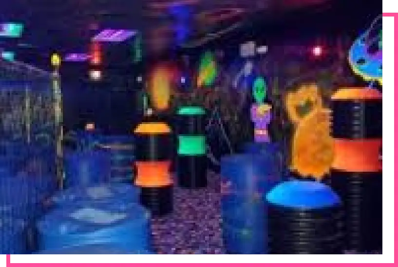 Our arena has a labyrinth of paths with barriers and blocks which can give you refuge from your opponents laser – but beware, they can also trap you momentarily and give your opponent the edge they need. Lights and music also surround you in this adventure.